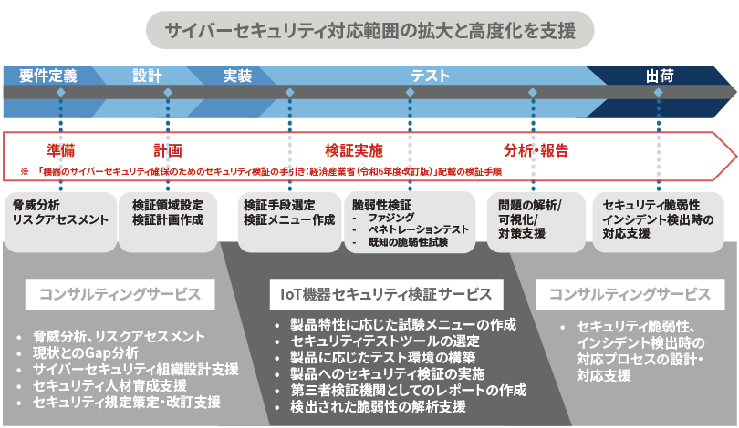 一つの機器、一つのプロトコル、コネクティビティ単位で始められます。また、繰り返し本サービスを利用することで、各ステップでの報告書(検証結果)を確認しながら、次の検証(より深い深度での検証)を行うかどうかを決められます。